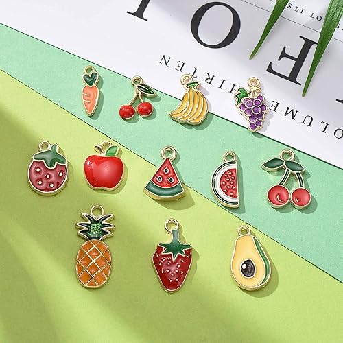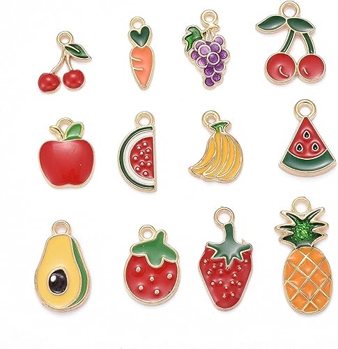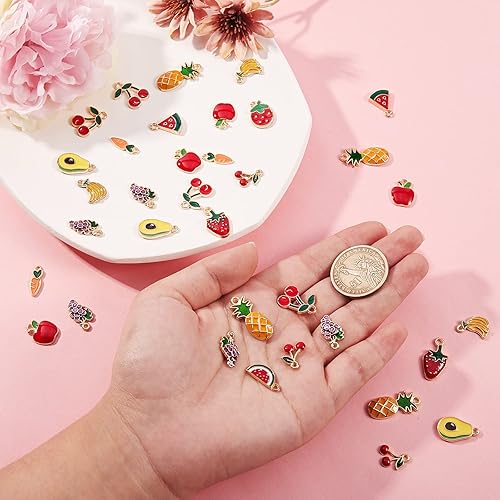 BEEFLYING 72 pièces Fruits Assortis Émail Plaqué Or Pendentifs à Breloques pour Colliers Bracelets Fabrication de Bijoux et Artisanat