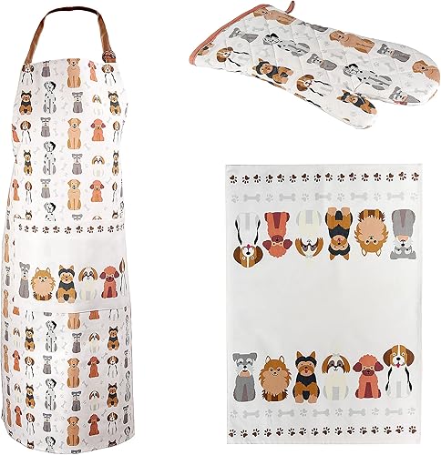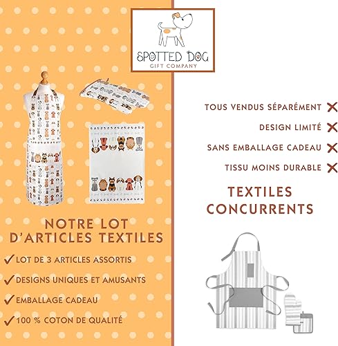 SPOTTED DOG GIFT COMPANY - Ensemble Cuisine 3 pièces - torchon/Tablier/manique - idée Cadeau pour Femme/ami des Animaux - Motifs Chiens