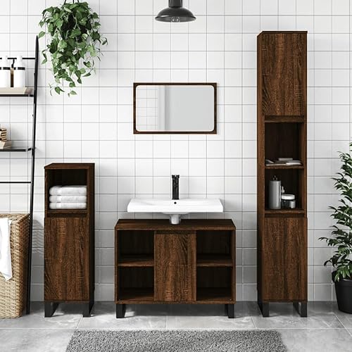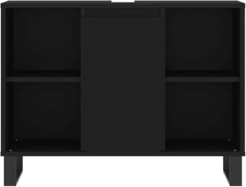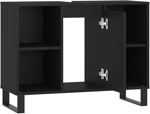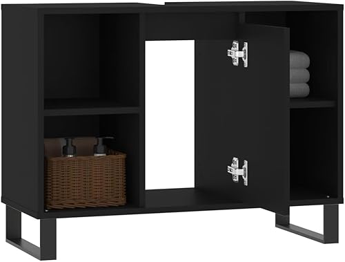 Rantry Armoire de salle de bain en bois d'ingénierie, noir, 80 x 33 x 60 cm, meuble de rangement pour salle de bain, meuble de salle de bain, meuble de toilette pour salle de bain 10
