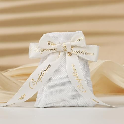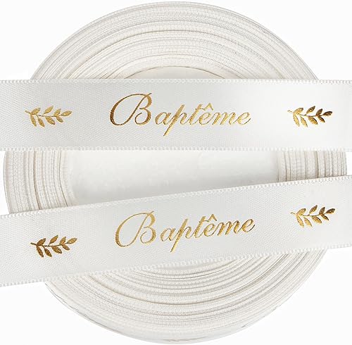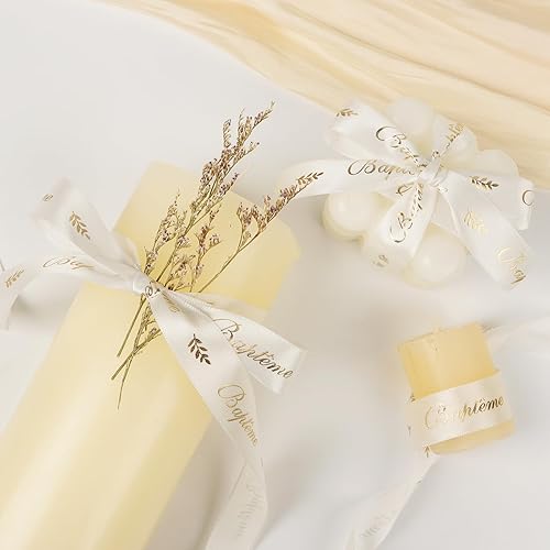 BETESSIN 2CMx22M Rouleau Ruban de Satin Blanc pour Décoration Baptême Emballage Cadeau Bougies Bouquet Bricolage