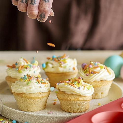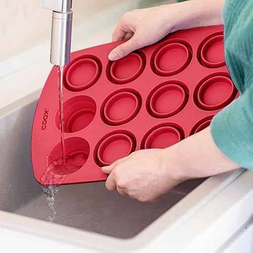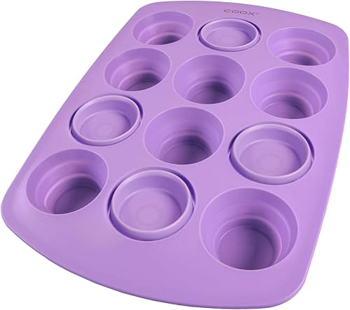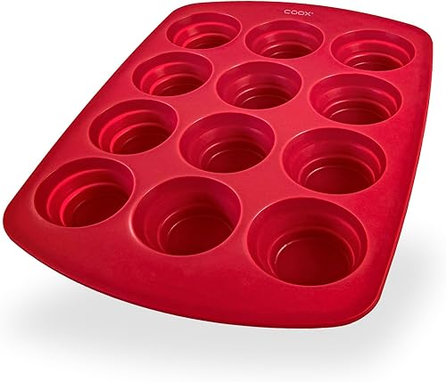 coox Moule à muffins, rouge foncé, peu encombrant, avec moules pliables, en silicone, sans BPA, convient pour 12 muffins