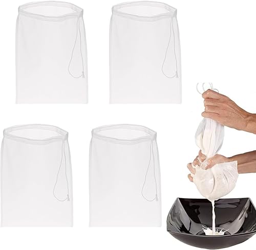 Lot de 4 sacs à lait de noix - En tissu à mailles fines - Réutilisables - Avec cordon de serrage - En nylon et coton - Pour fromage, jus de fruits, café, jus de légumes cheesecloth (20 × 30 cm)