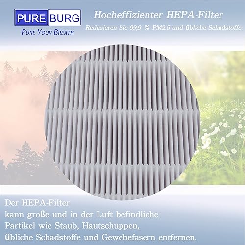 PUREBURG Lot de 2 filtres HEPA de rechange combinés avec filtres à charbon actif 2 en 1 compatibles avec les purificateurs d'air Philips AC4080/10, référence AC4158/00
