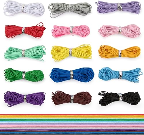 15PCS de Fils Elastiques Colorés Cordon pour Fabrication Bracelet Collier Boucle Bricolage Bande de Cheveux Décoration 75m
