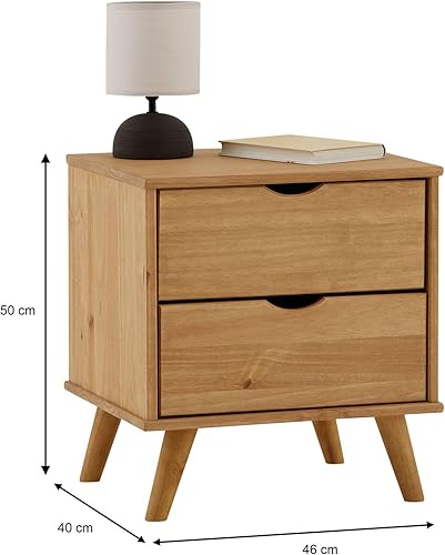 IDIMEX Table de Chevet Colima en pin Massif avec 2 tiroirs, Table de Nuit en Bois sur Pieds Coloris Naturel
