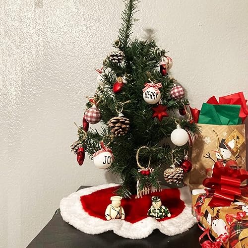 Mini Noël Jupe de Sapin, Cache Pied Sapin de Noel, Petite Jupe de Sapin Noël, Tapis Sapin Noel, Décoration d'arbre de Noël, Couvre Pied Sapin Noël Rond, Convient au Petit Arbre de Noël de Bureau