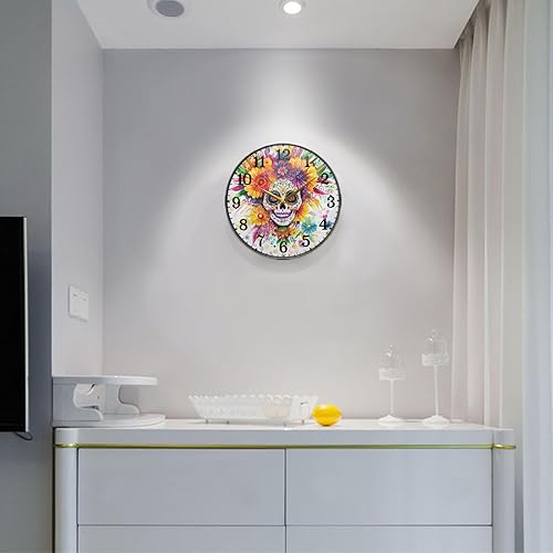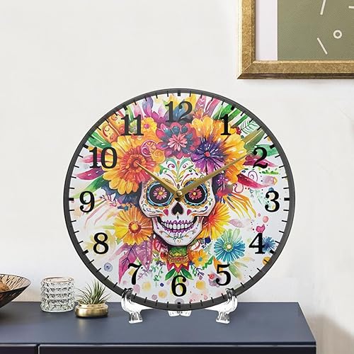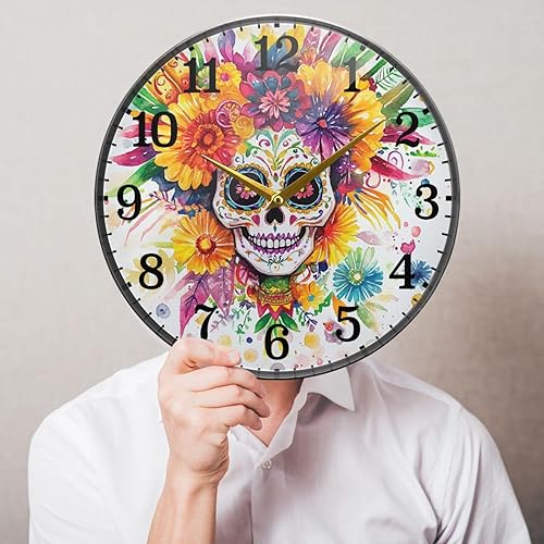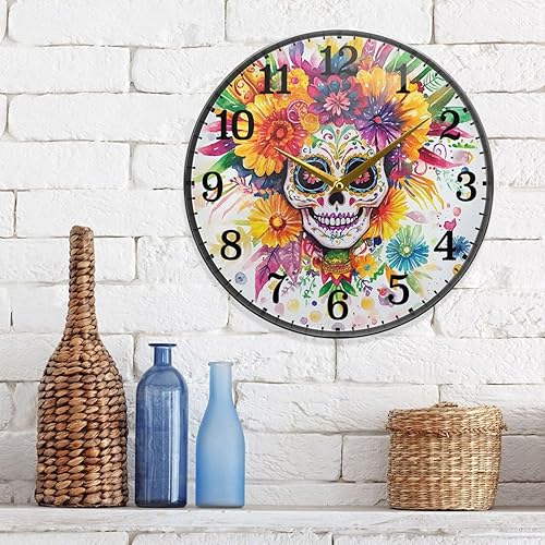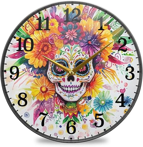 tplaotee Dia De Los Muertos Horloge murale ronde en acrylique Motif tête de mort mexicaine 30 cm