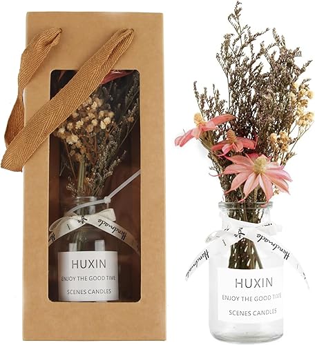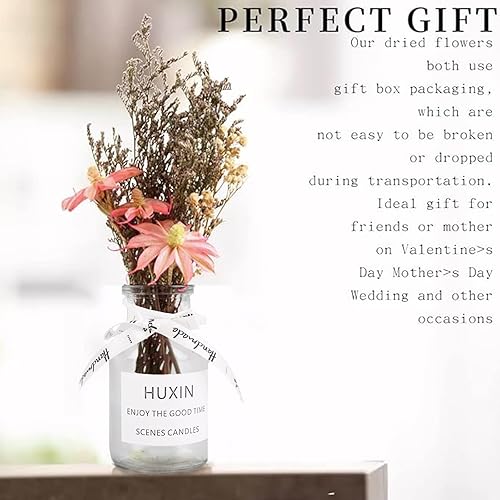 Bouquet de Fleurs Séchées, XiXiRan Fleurs Séchées Naturelles Bouquet, Fleurs Séchées Bouquets avec Vase, Bouquet Set Ornements, Saint-Valentin, Fête des Mères, Anniversaire, Coffret Cadeau, Marguerite