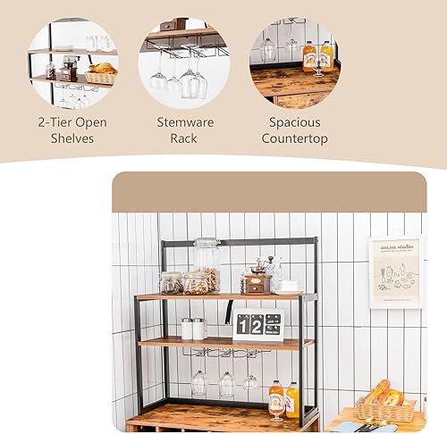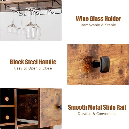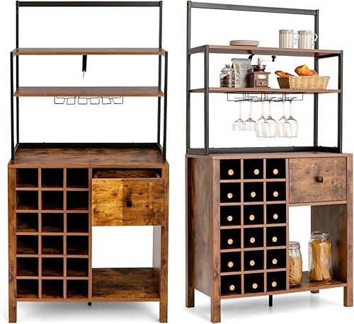 KOMFOTTEU Armoire de Cuisine avec casier à vin pour 18 bouteills, Buffet de Cuisine à 4 Niveau, Meuble Rangement avec Tiroir, 74 x 40 x 160 cm, Style Industriel