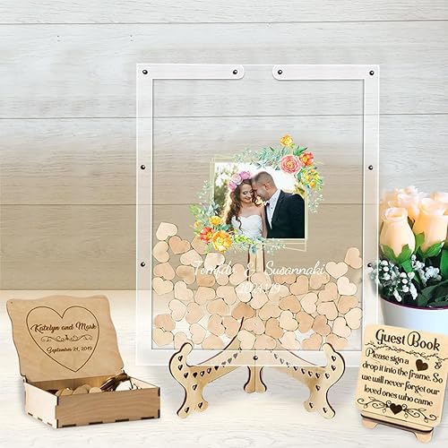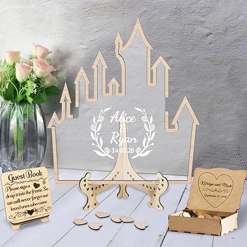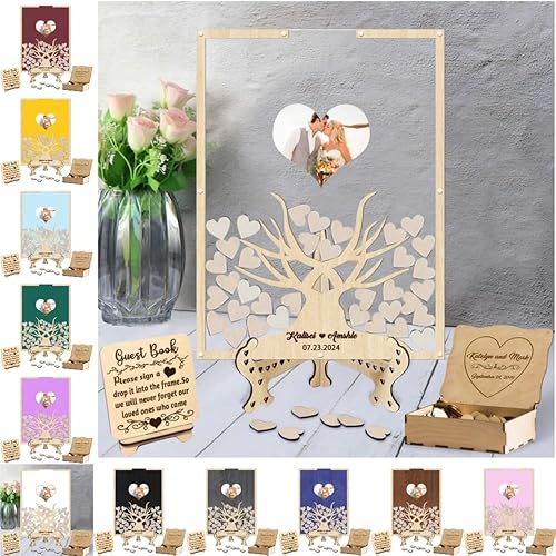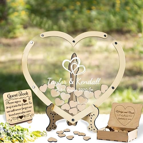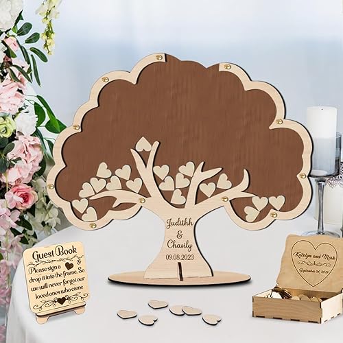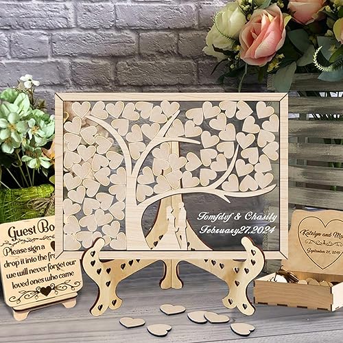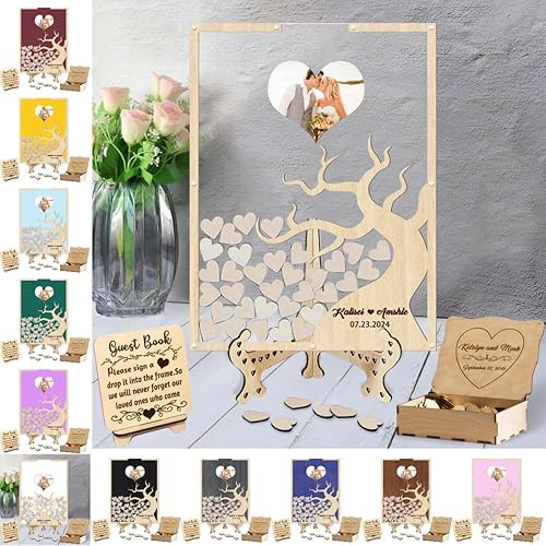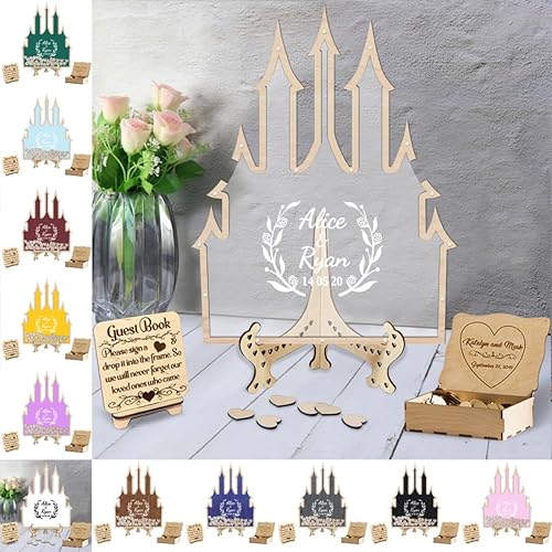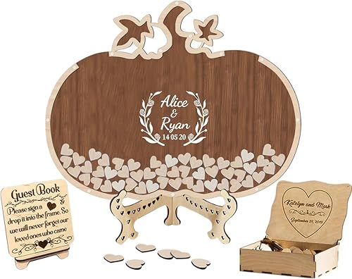 Certykllp Livre d'or de Mariage en Forme de Citrouille avec 30 à 100 cœurs en Bois pour décorations de Mariage, cérémonie et réception