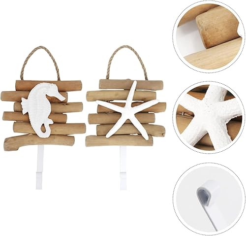 BESPORTBLE 2 Pièces Brancher Crochet Mural Décoratif Organisateur De Support Mural Muraux Crochet Mural Océan Patères Porte-serviettes Muraux En Bois Bord De Mer Rebord Personnalité