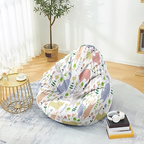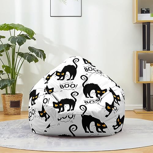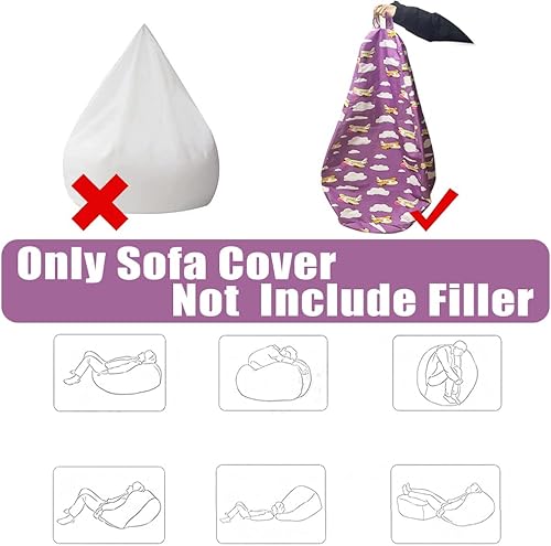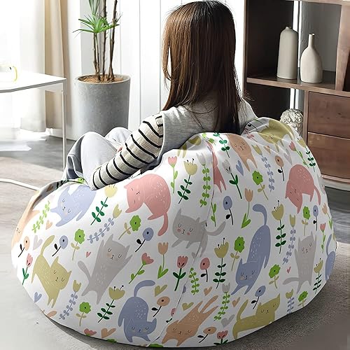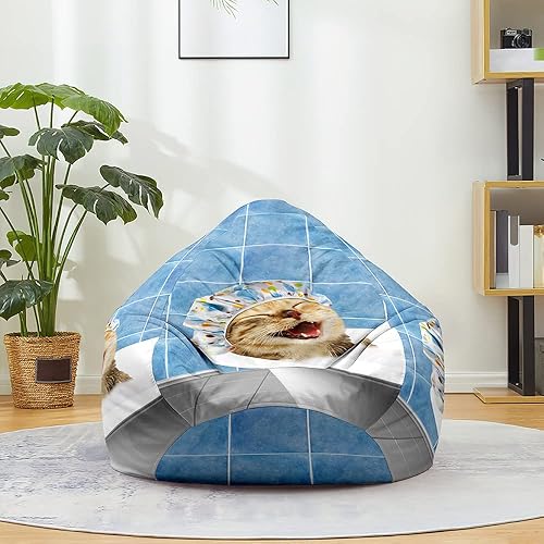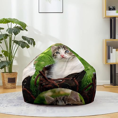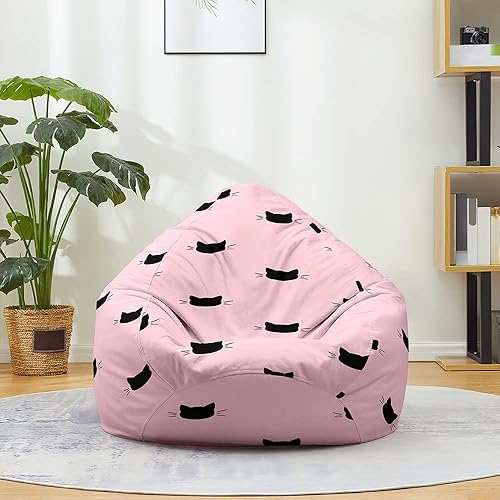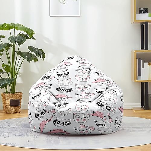FANSU Pouf Poire sans Remplissage, Pouf pour Enfant Ado Adulte, Pouf Salon Chambre Soft, 3D Chat Imprimer Sac Haricots, Polyvalent Pouf de Rangement (80x90cm,Chaton Emoji)