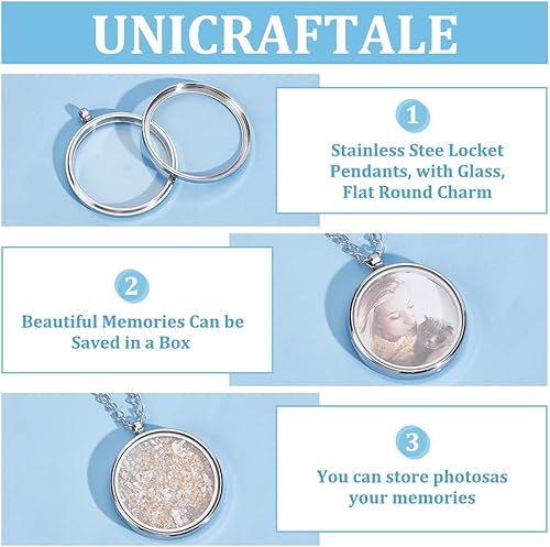 UNICRAFTALE 2Pcs Pendentif Médaillon Mémoire Acier Inoxydable 46mm Vierge Rond Flottant Médaillon Breloques Collier avec Breloques Photo en Verre pour la Fabrication de Bijoux de Collier