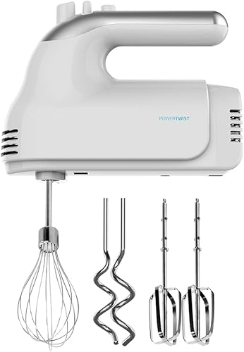 Cecotec Batteur à Main PowerTwist. 500 W, 5 Vitesses + Fonction Turbo, Design Ergonomique, 3 Accessoires : Fouet à Ballon, Fouets Batteurs et Crochets Pétrisseurs, Matériau Sans BPA