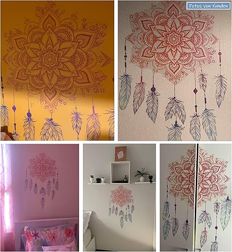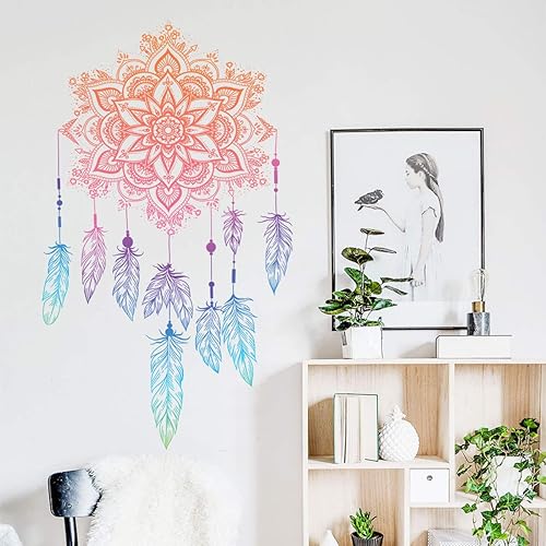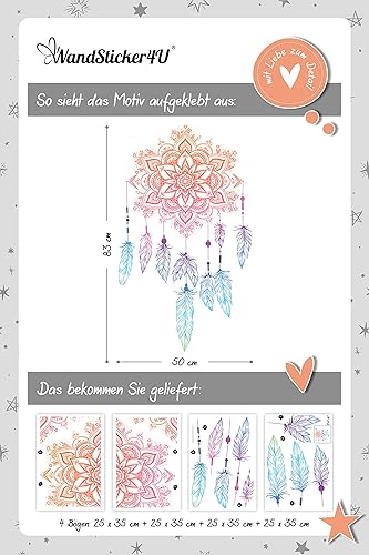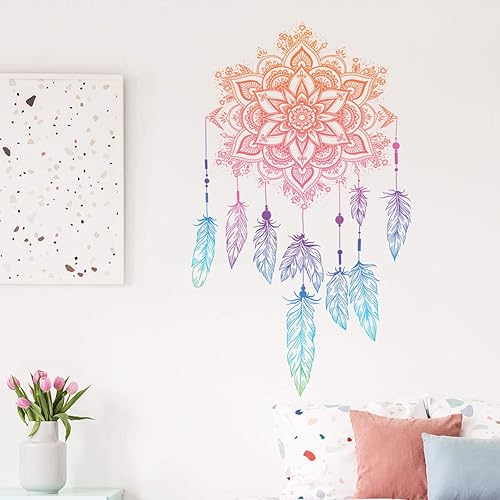 WandSticker4U®- Stickers muraux MANDALA rose (50x83 cm) I Autocollant mural mandala plume zen oriental indien yoga I Déco murale chambre ado fille chambre adulte salon cuisine couloir bureau yoga