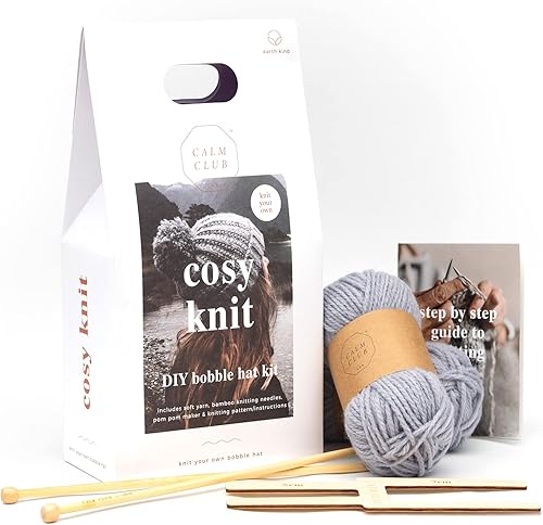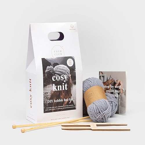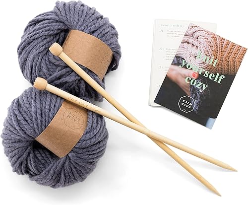Kit de tricot de couverture calm Club - Ensemble de tricot de couverture Chunky Comfort - Comprend 7 Pelotes de Laine Chunky, Une Aiguille à Tricoter en bambou et Un guide de Tricotage