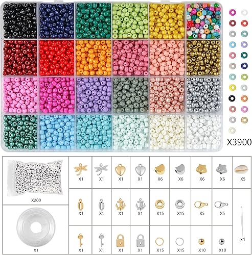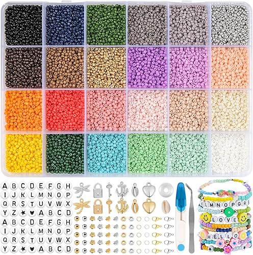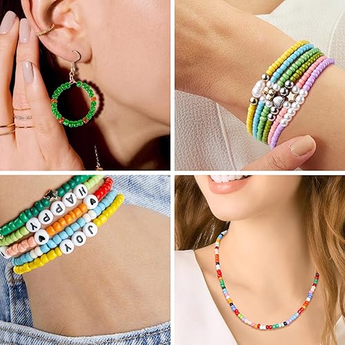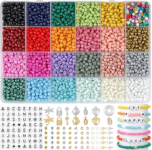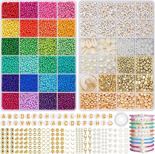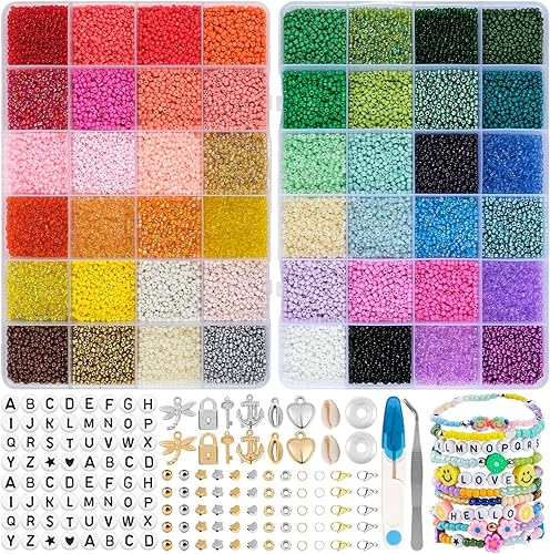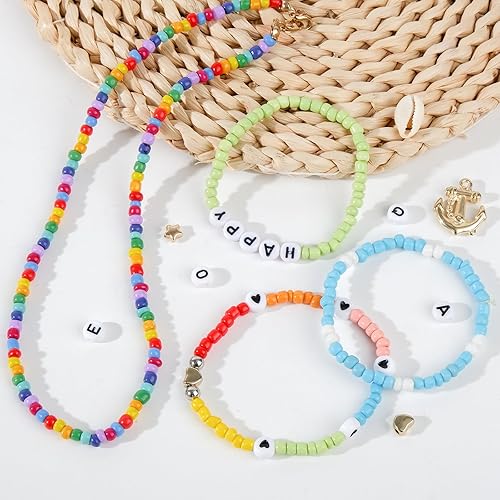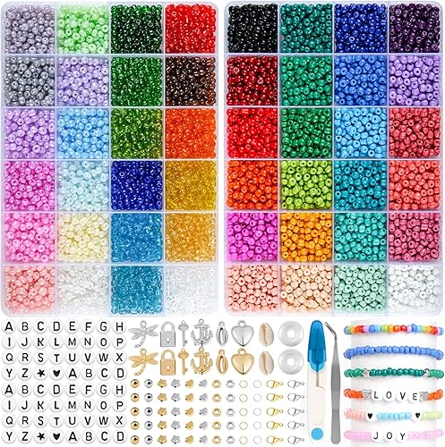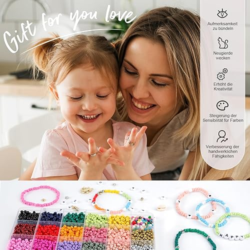 RUBY Perles pour Bracelets, 48 Couleurs Perles pour Bijoux avec 300 Perles de Lettres, Perles Rocaille Kit Perles Bijoux Cadeaux Idéaux pour Enfants, Adultes pour Noël, Anniversaires etc.