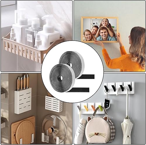 Scratch Autocollant Double Face 10M x 20mm, Bande Scratch Adhésive, Puissant Hook Loop Rubans Scratch pour Ménage, Bricolage Et l'artisanat, Moustiquaires, Tapis, Shearable, Noir