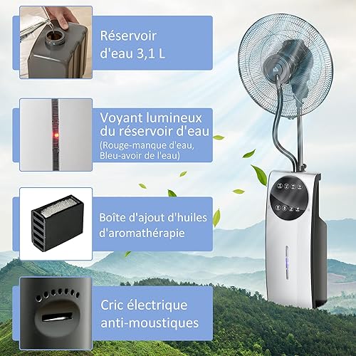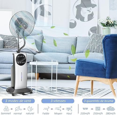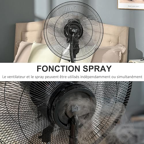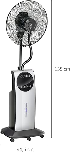 HOMCOM Ventilateur brumisateur sur roulettes 90 W télécommande - minuterie 3 modes 3 vitesses oscillant silencieux 40 x 38 x 135 cm gris noir