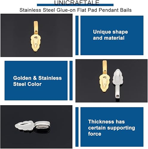 UNICRAFTALE 8 pièces 2 Couleurs Pendentif Pincement Acier Inoxydable Attache Pendentif Belieres pour Pendentif Pendentif Fermoir Pince Bail Clip Accessoire Pendentif Collier Fermoir pour Bijoux