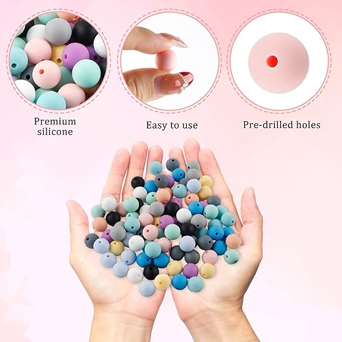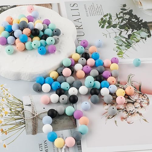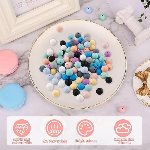 Lot de 120 perles rondes en silicone - 12 couleurs - 12 mm - Perles rondes en silicone pour bricolage, porte-clés, artisanat, fabrication de bijoux