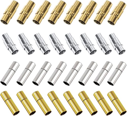 Zzcy 32 Pièces Fermoir Bracelet Cuir 4mm Fermoir Magnétique Bracelet Or et Argent Attache Bracelet pour Bijoux Embouts de Cordon pour Bijoux Faisant Fermoir Collier Cuir Deux Modèles