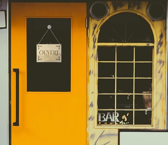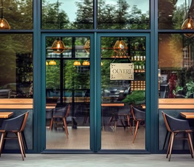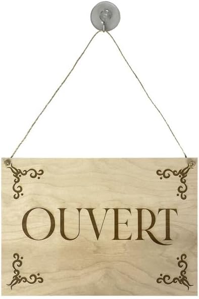 Panneau 'OUVERT - FERMÉ' en bois brut format A4 avec fixation ventouse