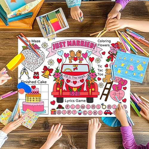 WEBEEDY 30 Sets de Table en Papier de Coloration Mariage 40x28 cm Sets de Table en Papier de Coloration Gâteau de Voiture pour Décoration de Table de Fête, Décoration de Restaurant de Noël de Mariage