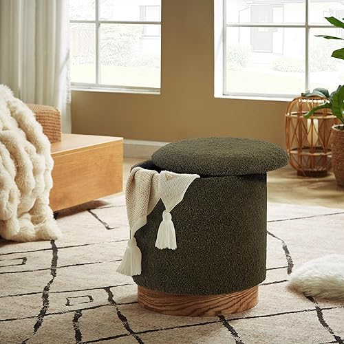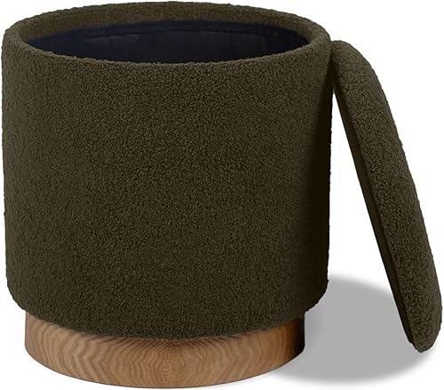 Sicaan Pouf Coffre Juliette Tissu Bouclette Kaki