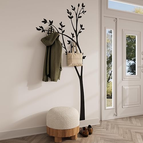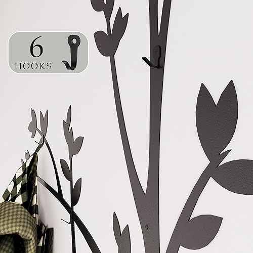 Porte manteau mural design Arbre | Meuble entree porte manteau | Portemanteaux pour entrée | Porte manteau mural vertical | Porte-manteau moderne avec 6 crochets | Coat rack 190x83cm