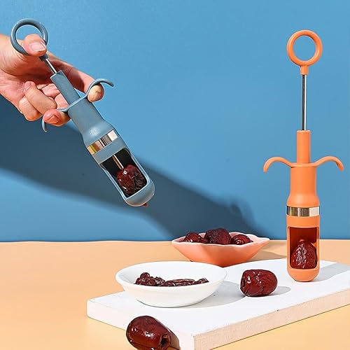 Guangcailun Multi-usages Dates Corer Cherry Pitter Graines Fruit Outil Push Type Anti-Skid Ménage Légumes Gadgets Accessoires, Orange