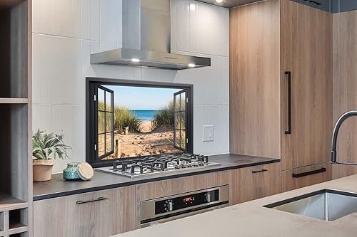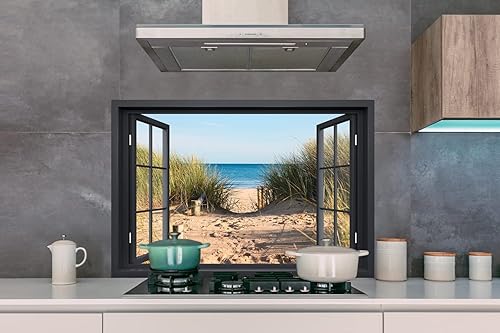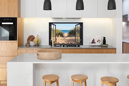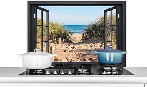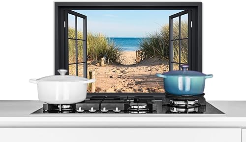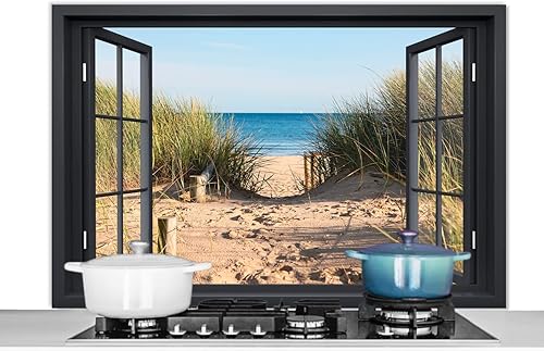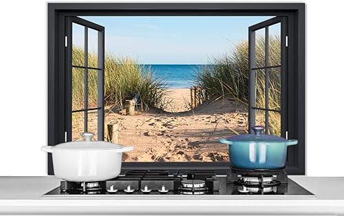 Credence Vue d'ensemble - Plage - Mer - Sable - Eau - Herbe de plage - Dunes Fond de hotte 80x55 cm Credence aluminium Plaque inox de cuisine