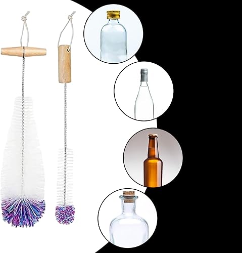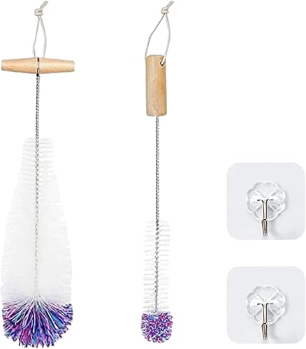 Brosse de nettoyage 2 pièces avec crochet 2 pièces, brosse pour bouteille d'eau avec poils doux pour résister aux rayures, pour bouteilles de soda, bouteilles en verre, bouteilles de lait (couleur)