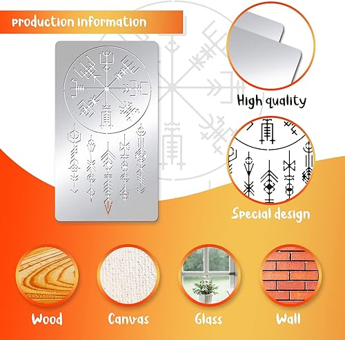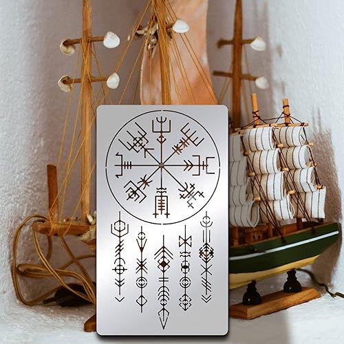 BENECREAT Viking Pochoirs de Peinture, Pochoir de Dessin en Métal D'Acier Inoxydable de Signes de Viking de 17.5x10 cm pour la Sculpture Sur Bois, Chauffage au Bois, Gravure et Scrapbooking