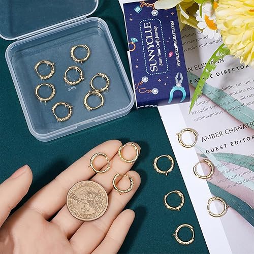 SUNNYCLUE 20 pièce de Véritables Créoles Plaquées Or 18 carats Accessoires de Boucles D'Oreilles Créoles en Laiton Boucles D'Oreilles Rondes Françaises Créoles avec Boucles en Vrac pour la Fabrication