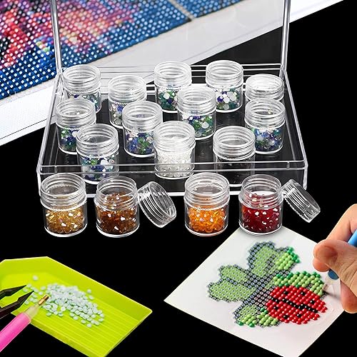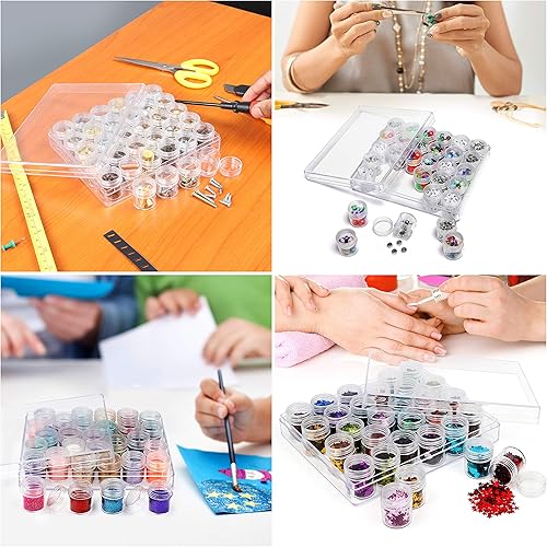 Kurtzy Boite de Rangement Diamond Painting en Plastique Transparent avec 30 Pots - Compartiments Amovibles avec Couvercles - Boite Rangement Perles, Bijoux, Ongles, Paillettes et Broderie