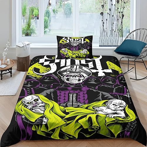 SUFFERBOW Fantôme B.C pour Adultes Et Enfants Housse De Couette 3D Imprimé Bande Fantôme Housses De Couettes E avec Fermeture À Glissière Microfibr avec Taies Parure De Lit 3 Pièces Double(200x200cm)