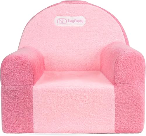 Heypappy Fauteuil Enfant - Fauteuil Confortable et ludique en Mousse Velour, Canapé Moderne Rose pour Filles et Garçons