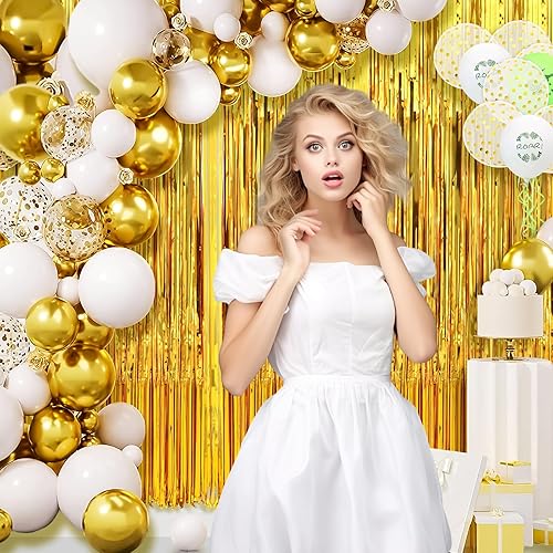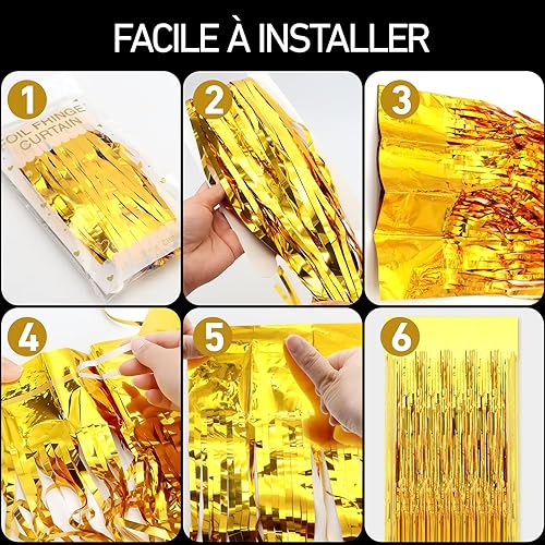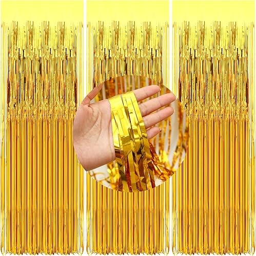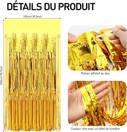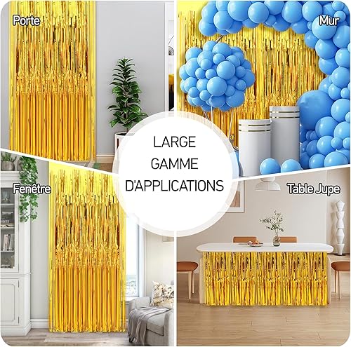 XIANGLONGY 3 Pièces Or Rideau Frange Anniversaire, 1m X 2m Brillant Rideaux Franges, Aluminium Rideau Metallique a Frange pour Décoration Fête Mariage d'anniversaire