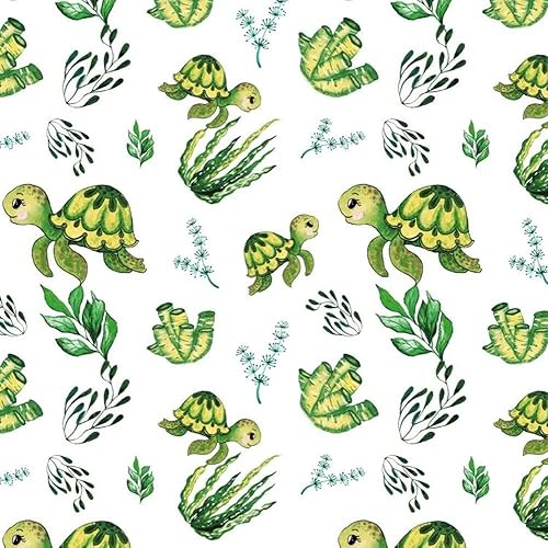 Tissu de couture, 100 % coton pour enfant, vendu au mètre, motif de tortue sous-marine, blanc, 100 x 160 cm