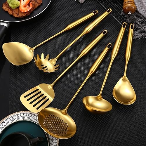 Ensemble d'ustensiles de cuisine en acier inoxydable doré pour économiser de l'espace (#2)