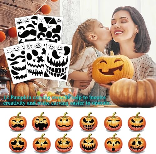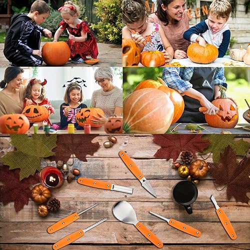 Hoshin Kit de sculpture de citrouilles d’Halloween, Outils professionnels en acier inoxydable robuste avec étui de transport (ensemble de 7 pièces)