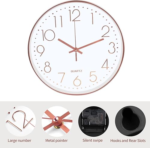 Gigtoop Horloge Murale, Horloge Murale Moderne 30cm Horloge Murale Ronde,Horloge Murale à Quartz,Murale Facile à Lire, sans de Bruit, Style Moderne pour Maison,Cuisine