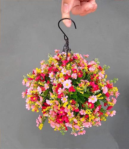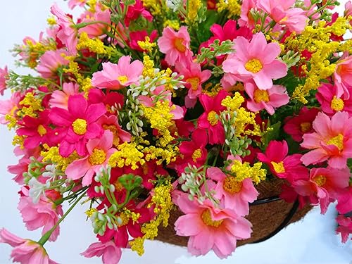 Maison à l'extérieur de la chaîne de Soie Panier Suspendu Pot de Fleurs DIY Marguerites artificielles Fleurs Rouges et Roses (Grand Panier)