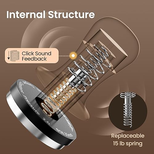 MHW-3BOMBER Tamper à expresso de 58 mm – 3 ressorts avec rétroaction sonore – Outil de barista avec ressorts de rechange de 6,8 kg/13,6 kg – Compatible avec paniers standard de 58 mm T7072T-OS