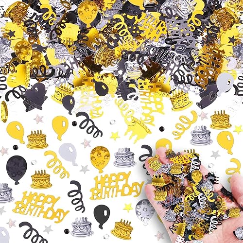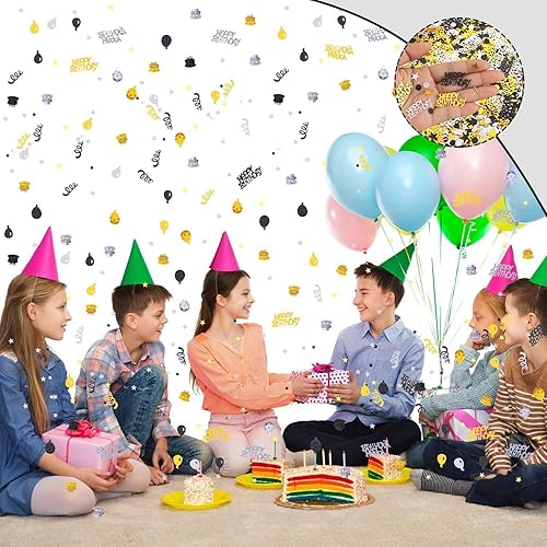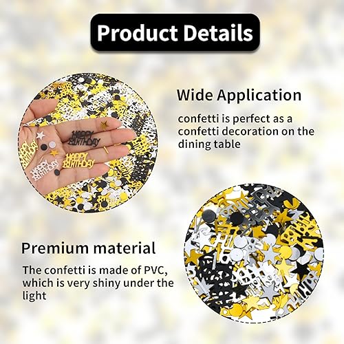 3000 Pièce Confettis Decoration Anniversaire Noir et Or,Confettis Anniversaire,Decoration Table Deco,Décorations de Table Paillettes Cadeau Happy Birthday Pour Carnaval,Fête,Adulte,Garcon