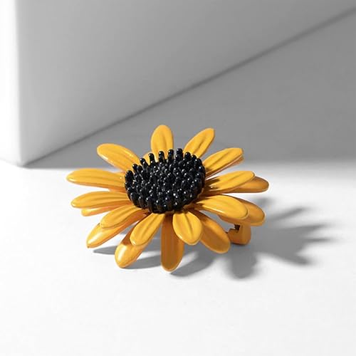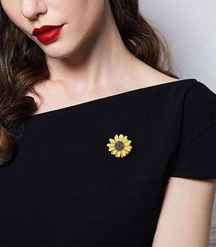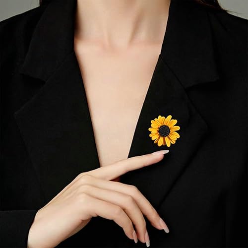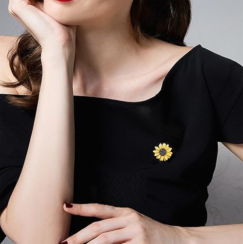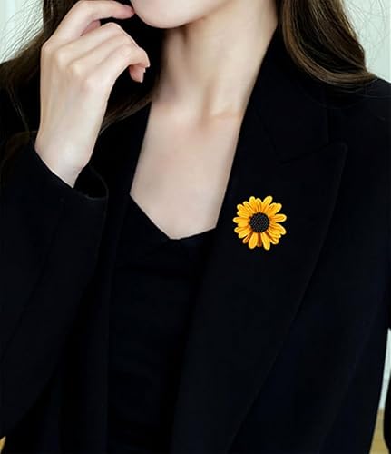 Broche tournesol en alliage jaune - Broche marguerite - Épingles à col - Épingles à revers - Bijoux floraux - Collocation de vêtements - Manteau, chapeau, pull - Accessoires, 1.3x1.3inch