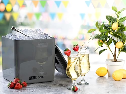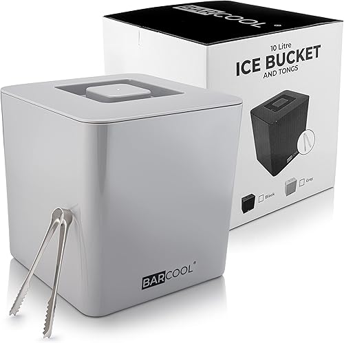 Barcool Seau à glace avec couvercle et pince à glace,Sans BPA,10 litres,Isolation carrée et double paroi,Parfait pour la maison, les bars, les restaurants, les barbecues et les pique-niques (gris)