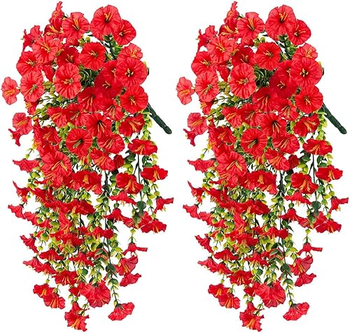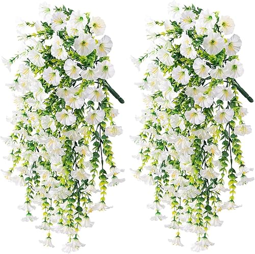Lot de 2 pétunias artificiels Suspendus en Soie, pour décoration extérieure, Jardin et Balcon. (C)