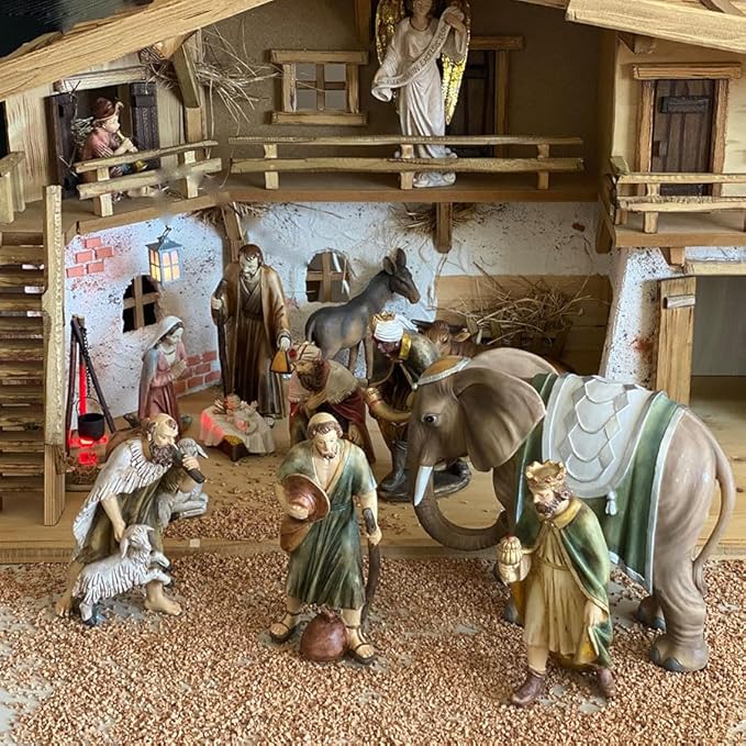 FADEDA Berger avec mouton, agenouillé, hauteur : 9 cm, peinte à la main, figurines de crèche détaillées, décoration de table de Noël, accessoire de crèche